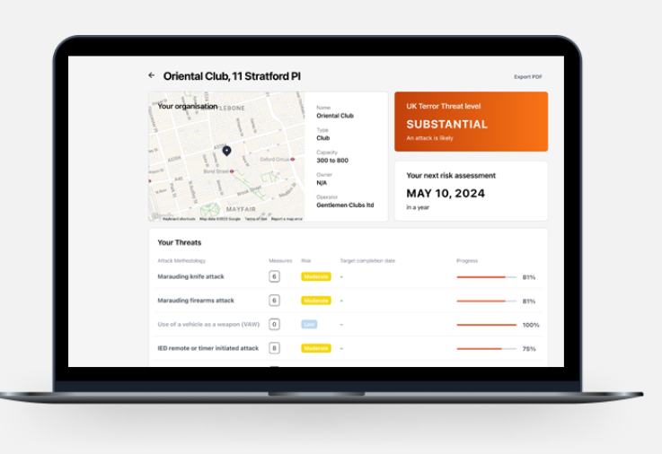 Our platform simplifies compliance with Martyn’s Law. It helps any organisation—regardless of size—assess risk, apply the reasonably practicable test, and generate the required plans in under an hour.